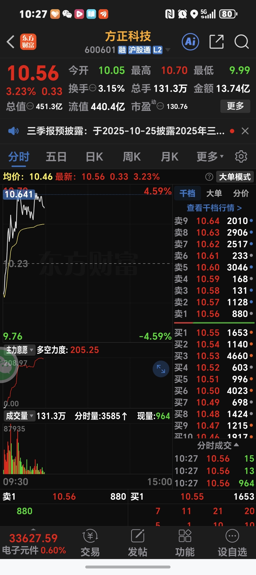 $方正科技(SH600601)$ 每次一到成本线,股价就被打压下去,已经补了三次仓了,我为了兄弟们今天清仓,留下的发财啊
