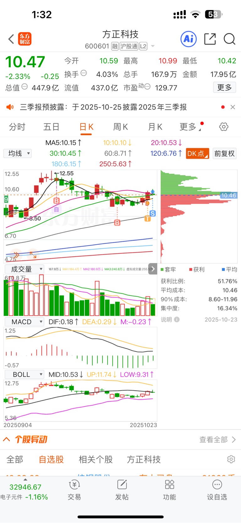 $方正科技(SH600601)$ 赚个手续费走了,CPO三傻还卡在三重顶