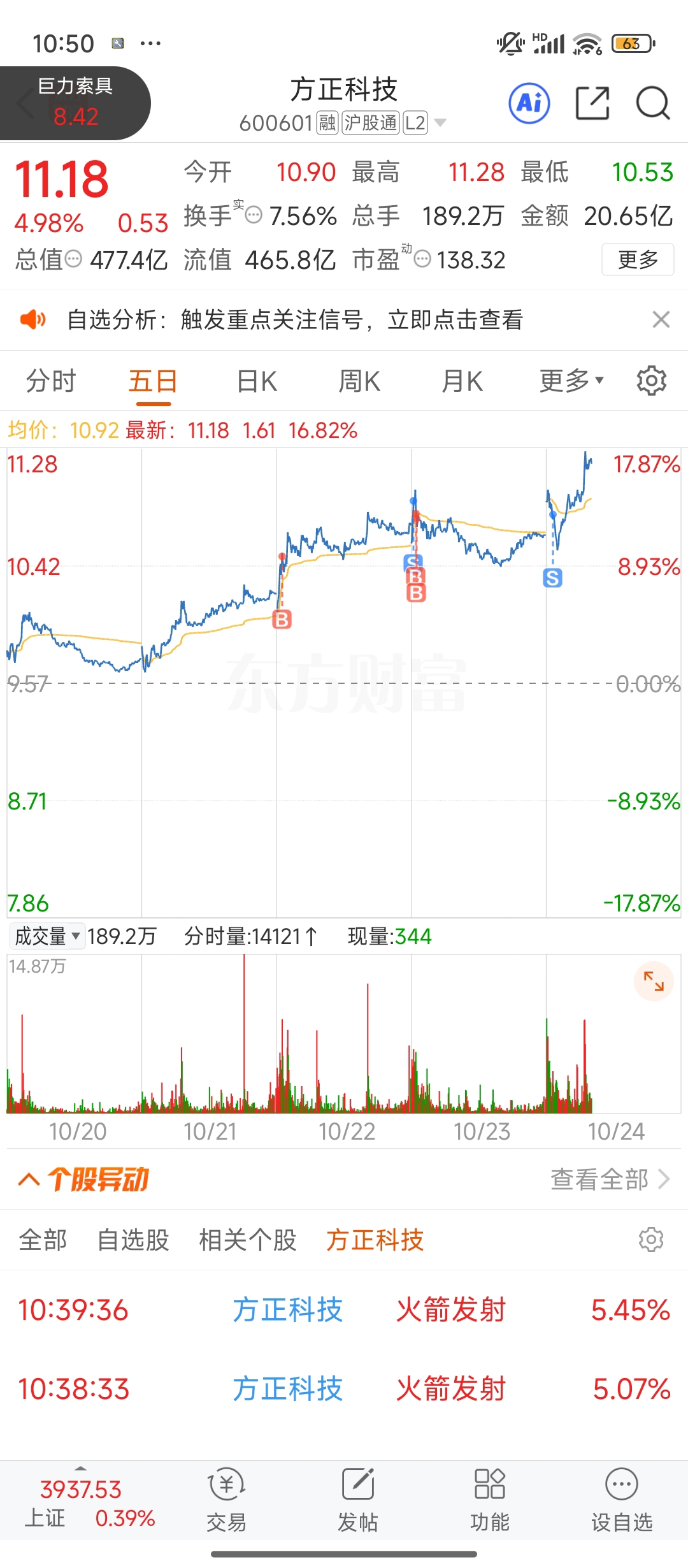 $方正科技(SH600601)$ 拿了几天终究还是被洗下车了