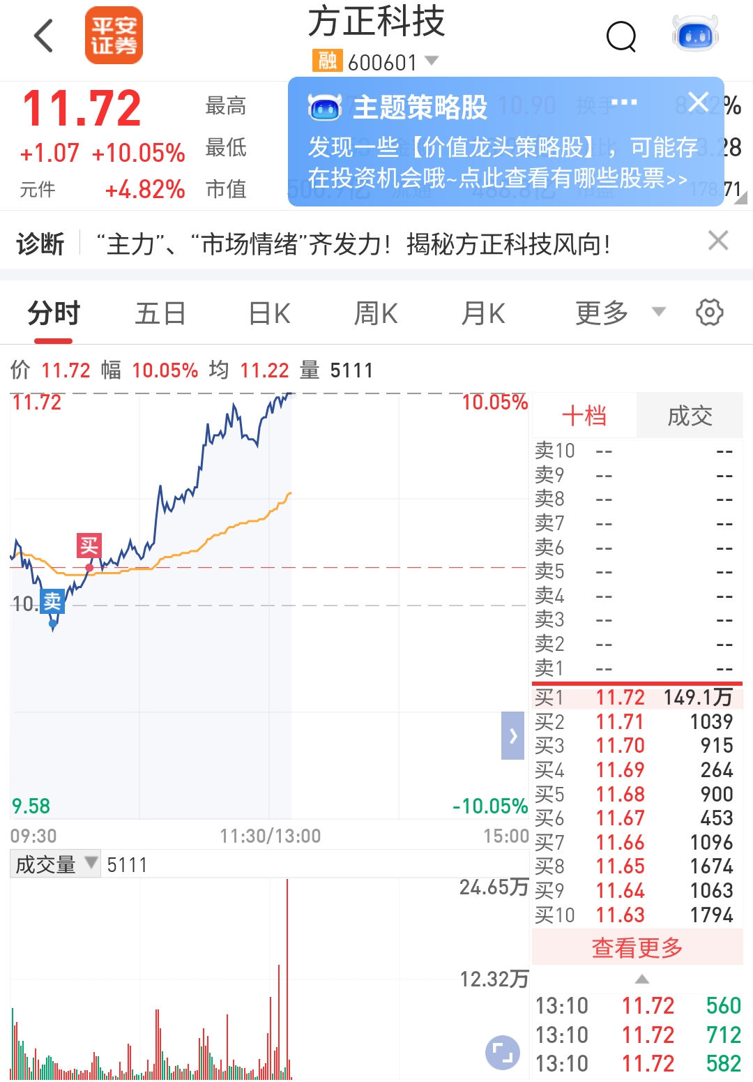 $方正科技(SH600601)$ 早上56洗跑了一卖就涨,后84又接回来了大笑,还好还好。