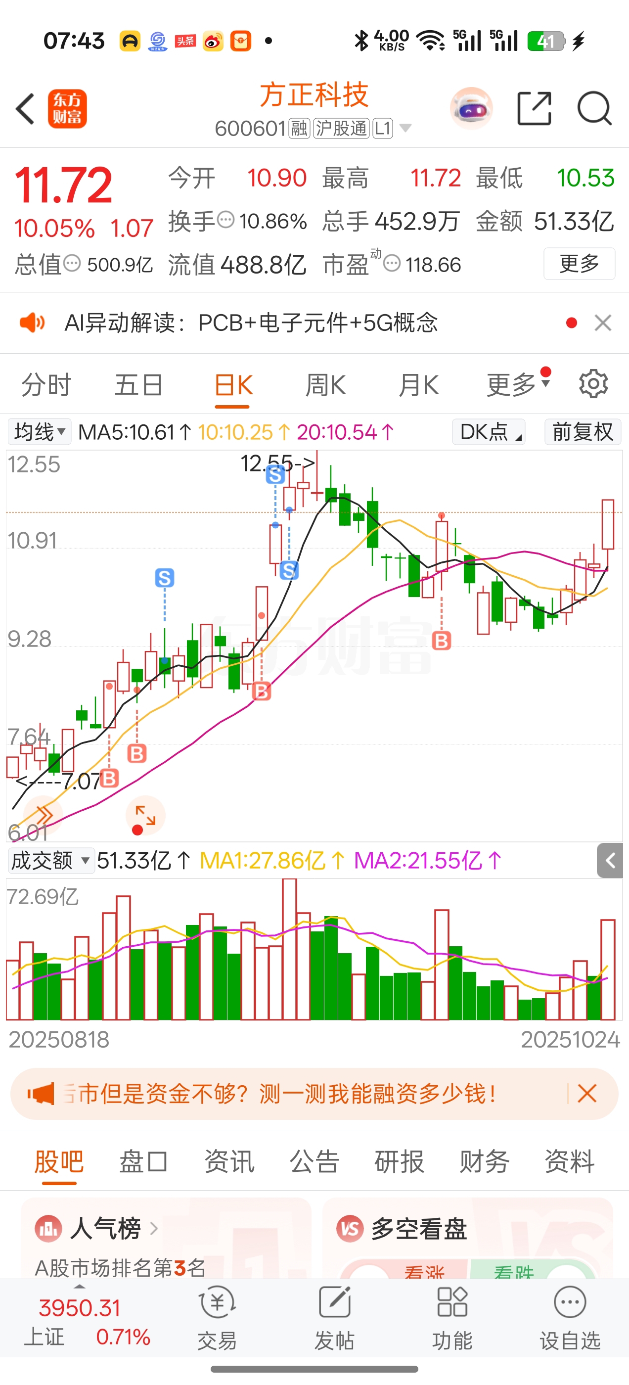 $方正科技(SH600601)$ 炒股养家为啥看上这个票了,下周还能涨停吗