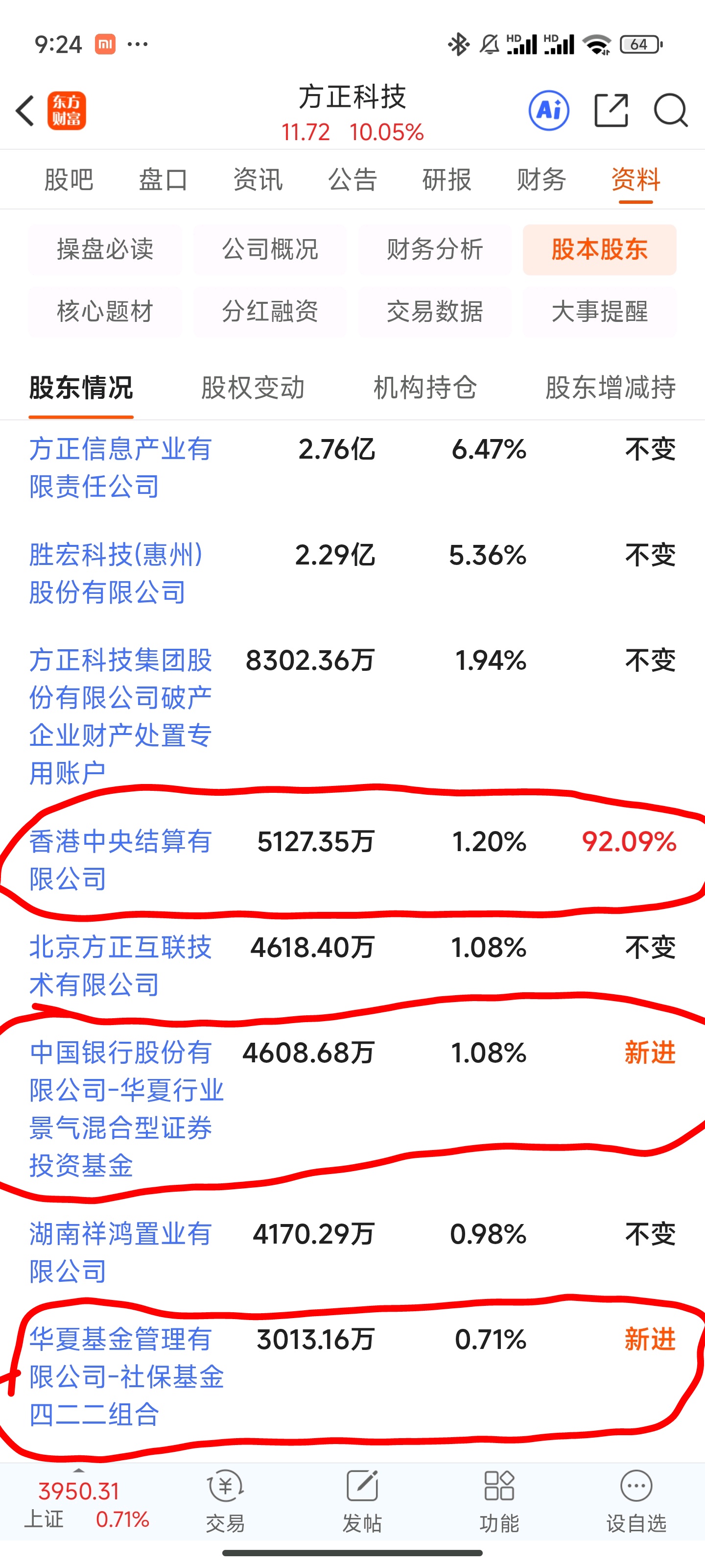 3. G嘉队大幅度增持和社保基金入场方正。就凭这一点,我可以放心持有。