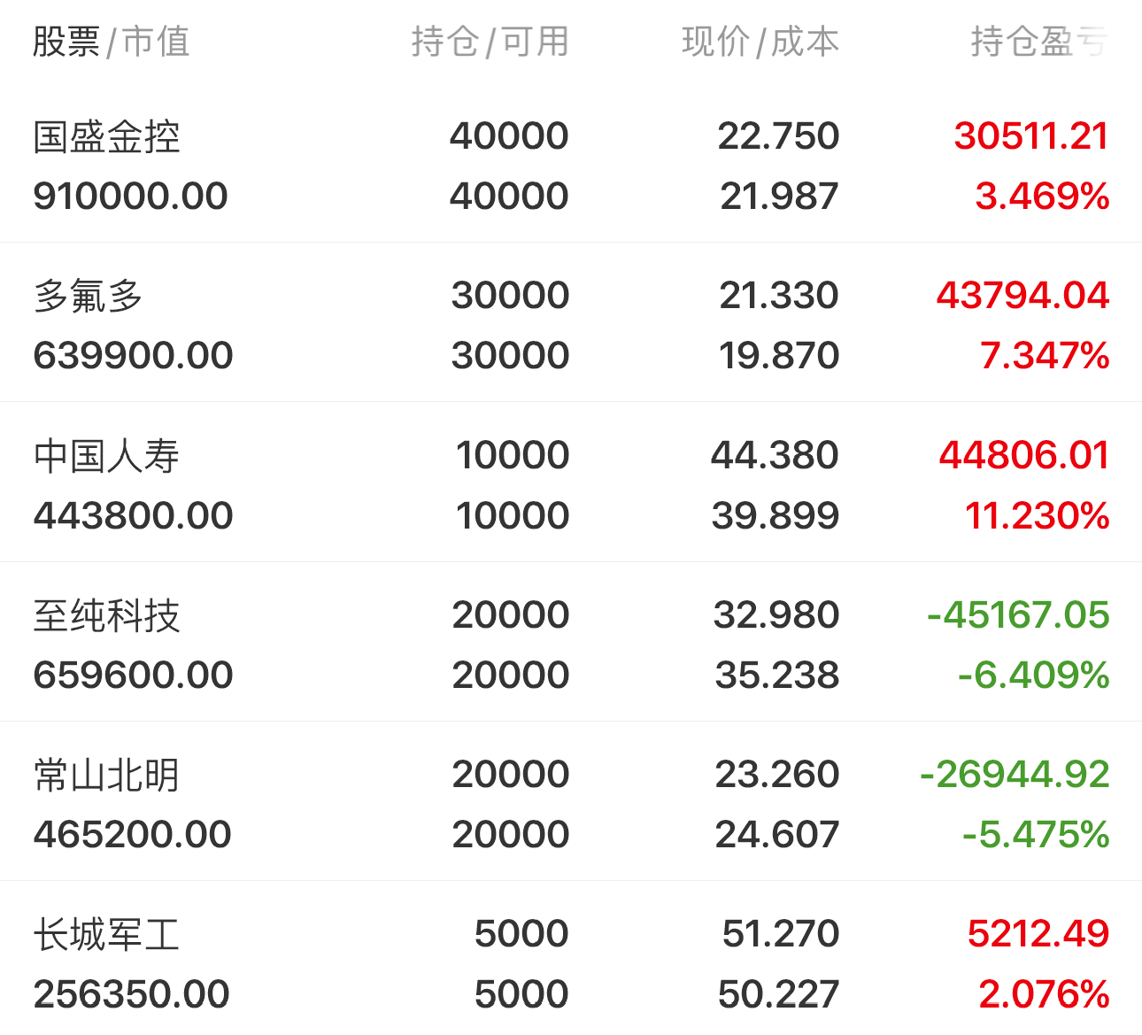 持仓计划: