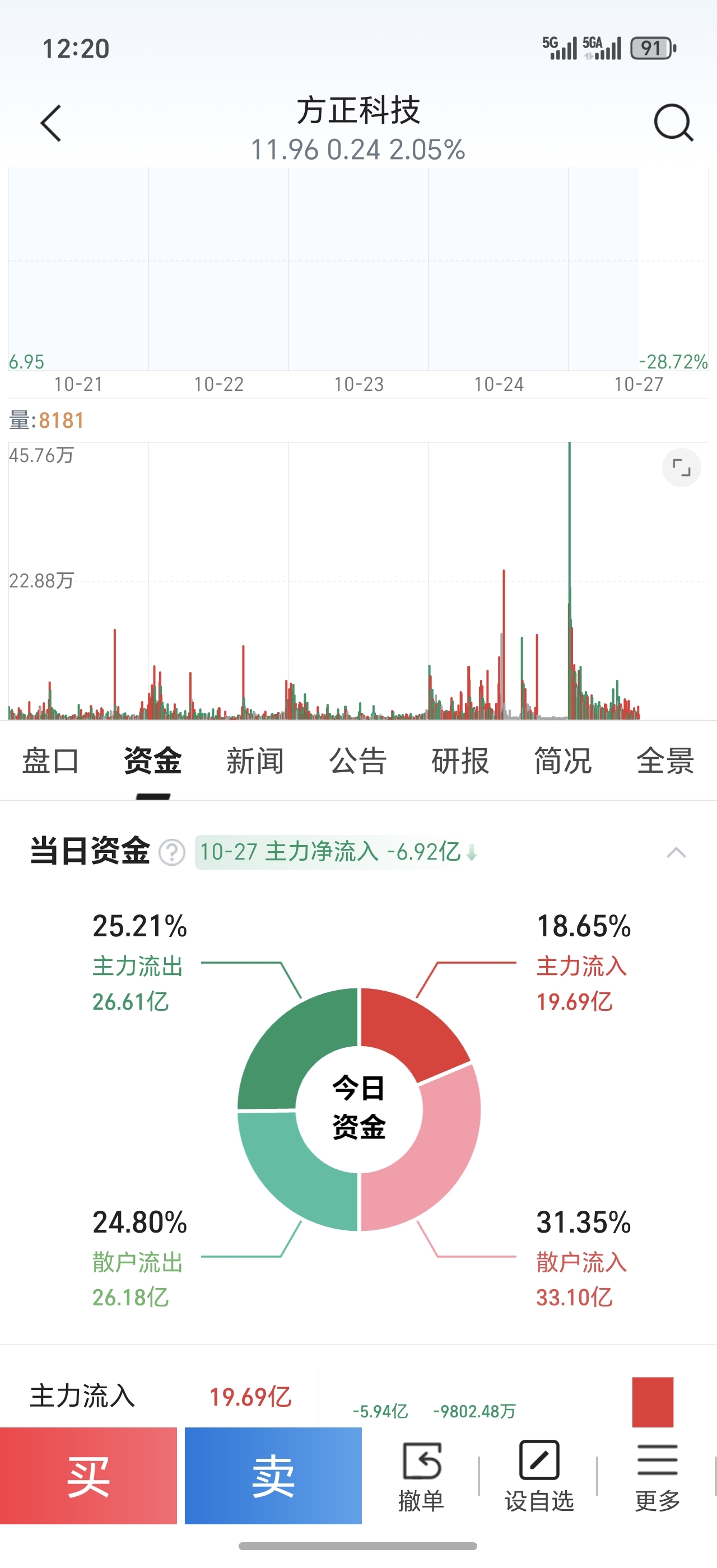 $方正科技(SH600601)$ 今天加仓会不会被按下去了