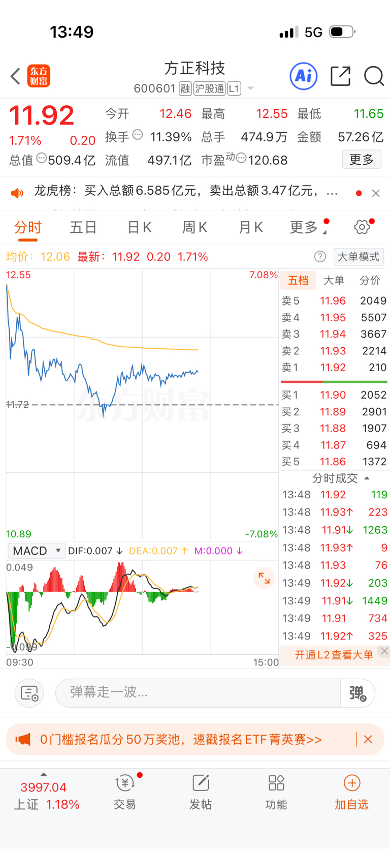 $方正科技(SH600601)$ 大胆预测:我觉得方正这里要反转时间点应该在14:20分至14:40分内,主力能不能提前赏脸让我们高兴高兴。拭目以待!178[威武]