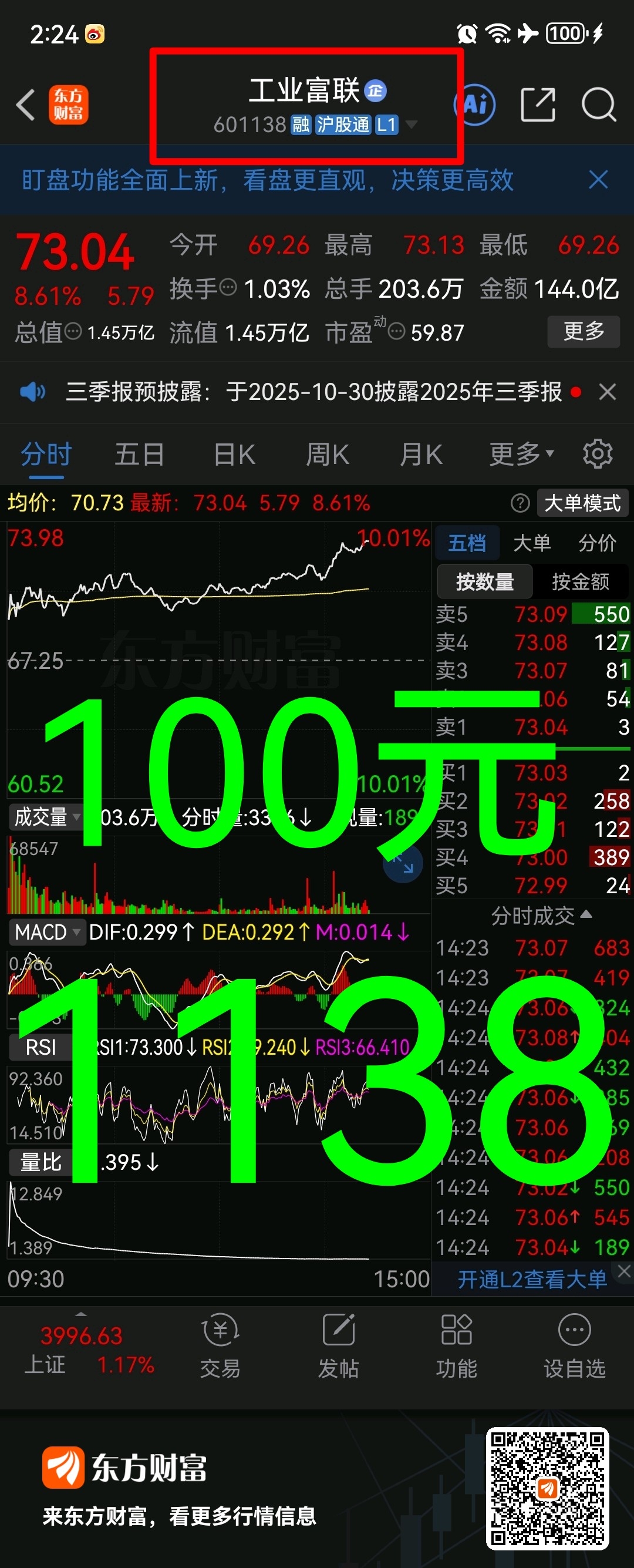 聪明 资金 加速 抢筹 “万亿哥 ” 601138 工业富联 #股市怎么看# #强势机会# #炒股日记# #收盘点评# #实盘记录# $方正科技(SH600601)$ $平潭发展(SZ000592)$ $晶瑞电材(SZ300655)$