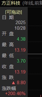 方正科技涨停 今年10个月 股价翻了3倍 净利润2倍 吃到1.5倍净利润a股是可以长拿的,这股我是2月买的,经历4月关税大跌,浮亏近30% 到现在盈利154% 没动过