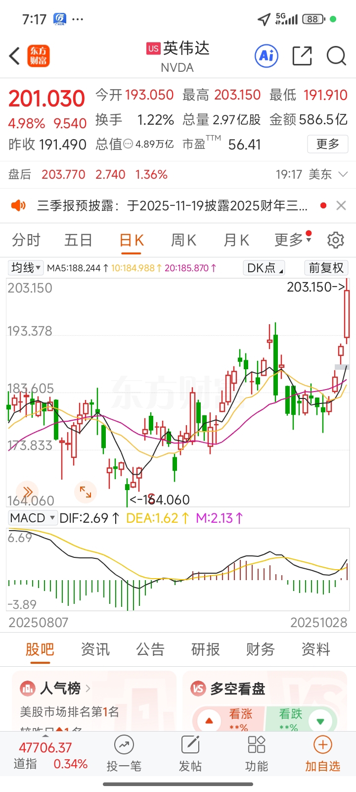 美股英伟达又大涨五个多点,你的合作提供商啊,看你今天表现了