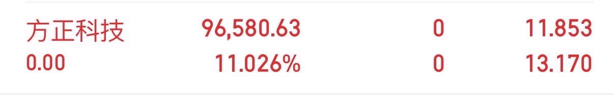 $方正科技(SH600601)$ 板板噔噔满满榛榛简单盈利11%。稳妥妥了,想要这么稳的票我想看看这条博文有多少个赞和评论178[威武]