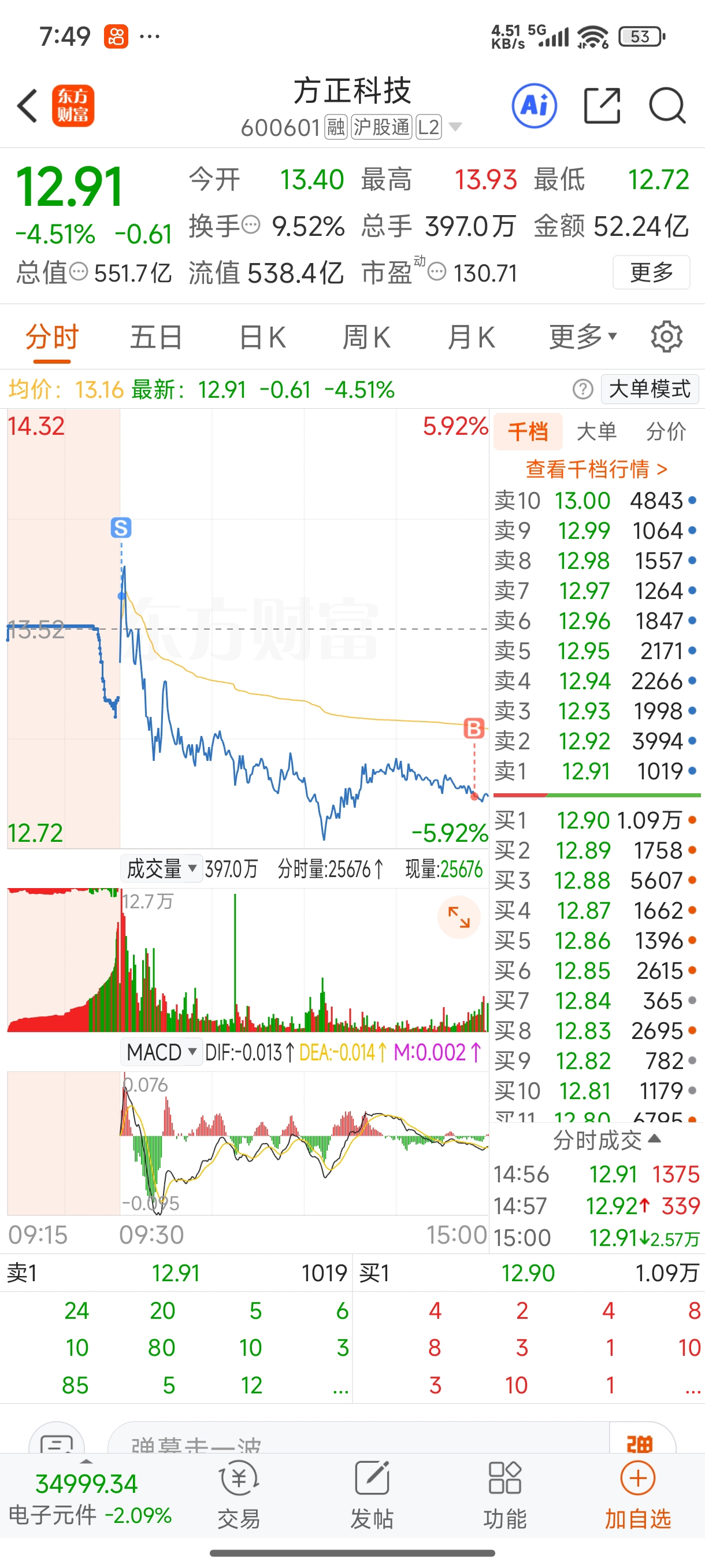 $方正科技(SH600601)$ 看好你哦,明天反包