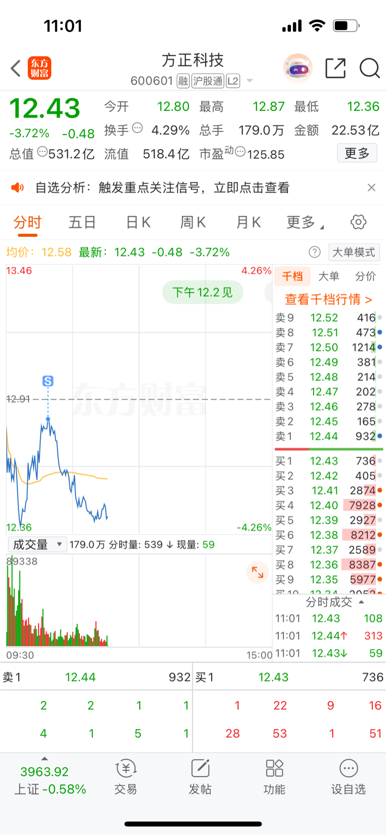 $方正科技(SH600601)$ 等你好好调整又来吧
