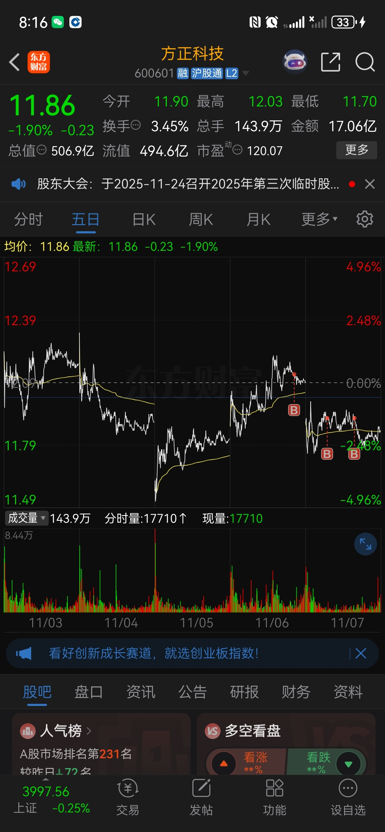 $方正科技(SH600601)$ 炒股是挣信息差的,信我就周一高开也能加仓