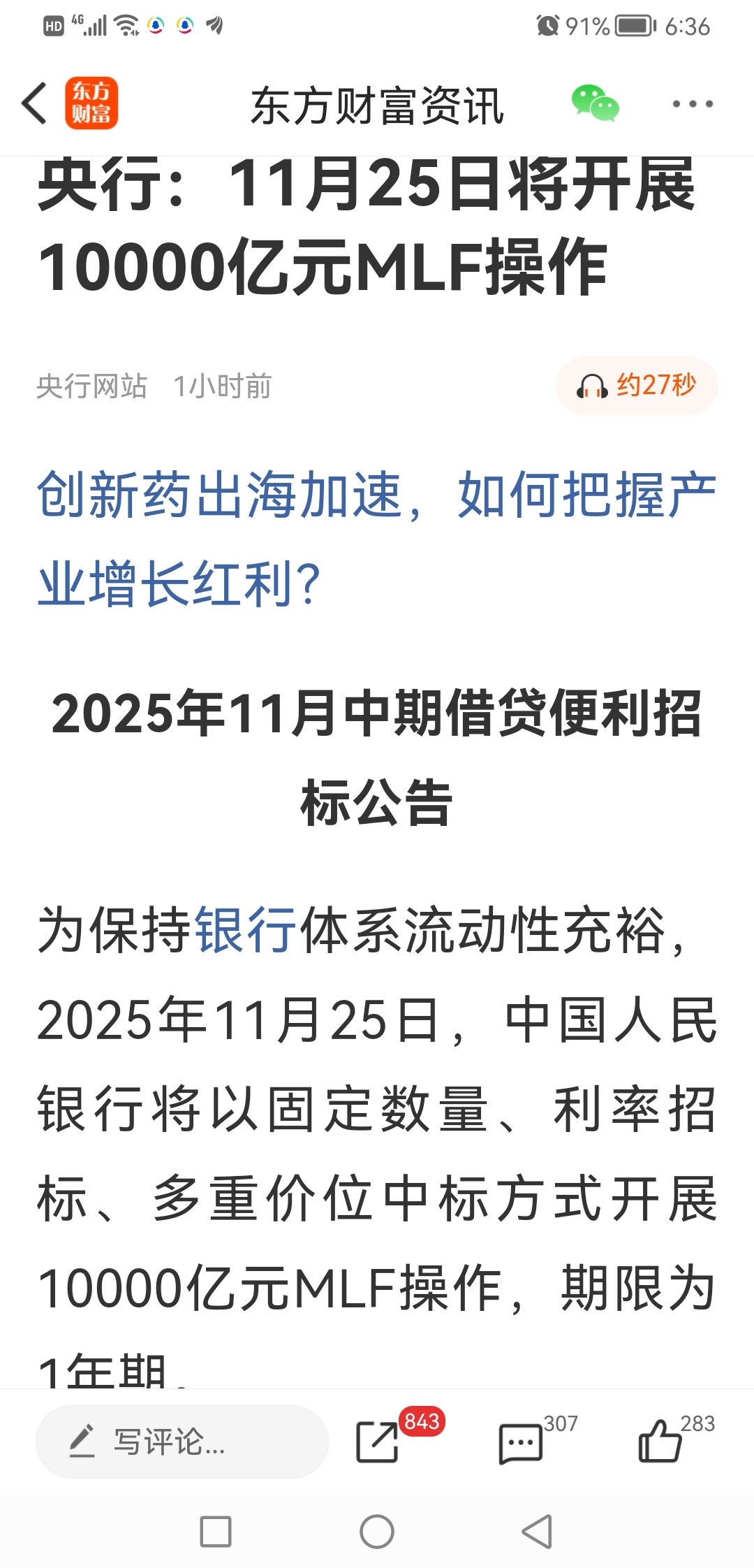 为保持银行体系流动性充裕,2025年11月25日,中国人民银行将以固定数量、利率招标、多重价位中标方式开展10000亿元MLF操作,期限为1年期。