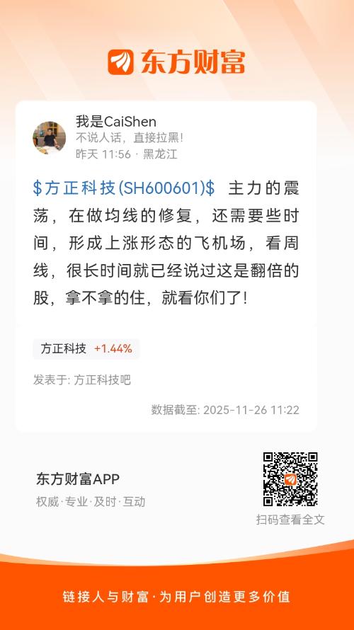 $方正科技(SH600601)$ 主力的震荡,在做均线的修复,还需要些时间,形成上涨形态的飞机场,看周线,很长时间就已经说过这是翻倍的股,拿不拿的住,就看你们了!