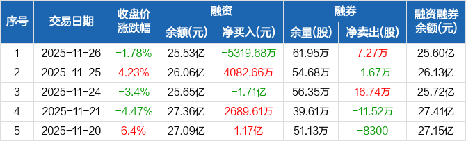 方正科技:融资净偿还5319.68万元,融资余额25.53亿元(11-26)