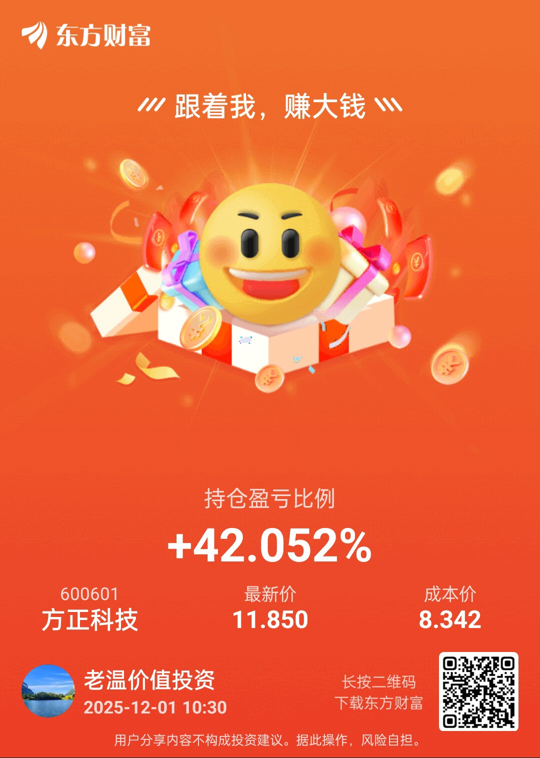 $方正科技(SH600601)$ 拿住,目标翻倍本金出来,利润拿2-3年