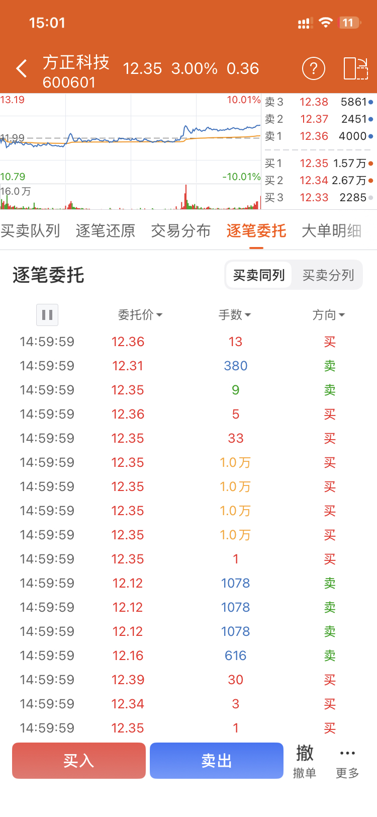 $方正科技(SH600601)$ 牛,最后一秒买了4万
