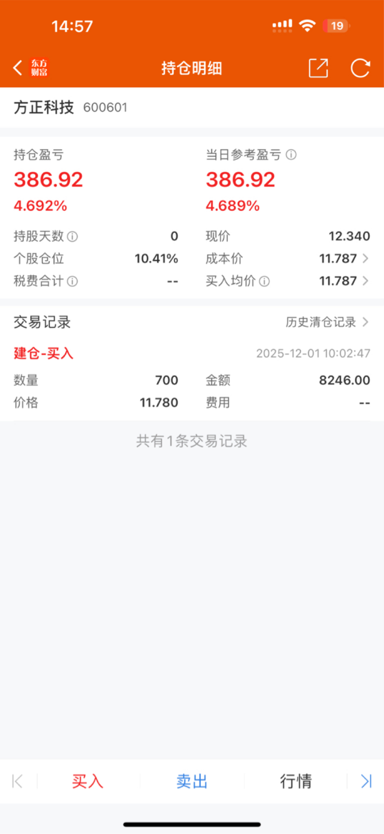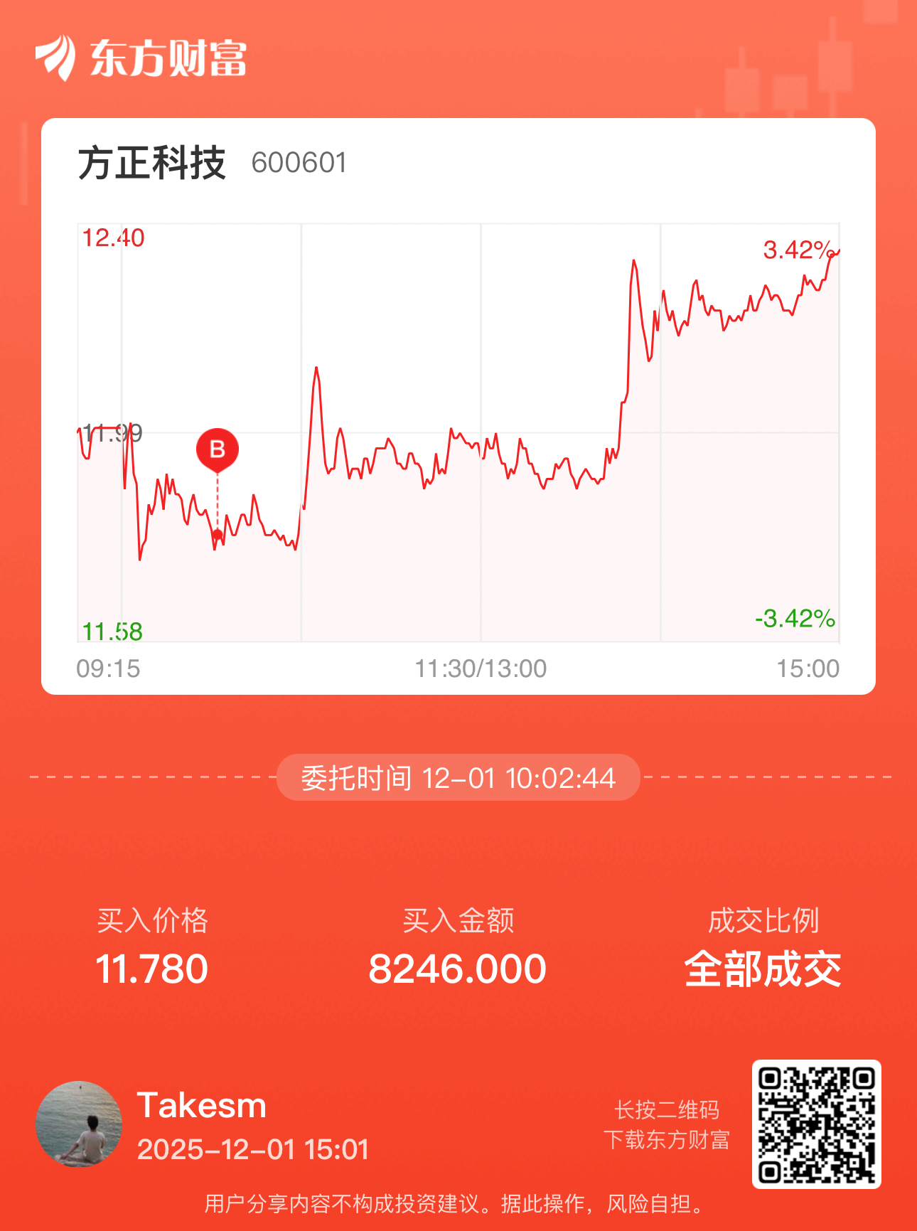 委托标的:方正科技今天11.78建仓成功,接下来看你表演了