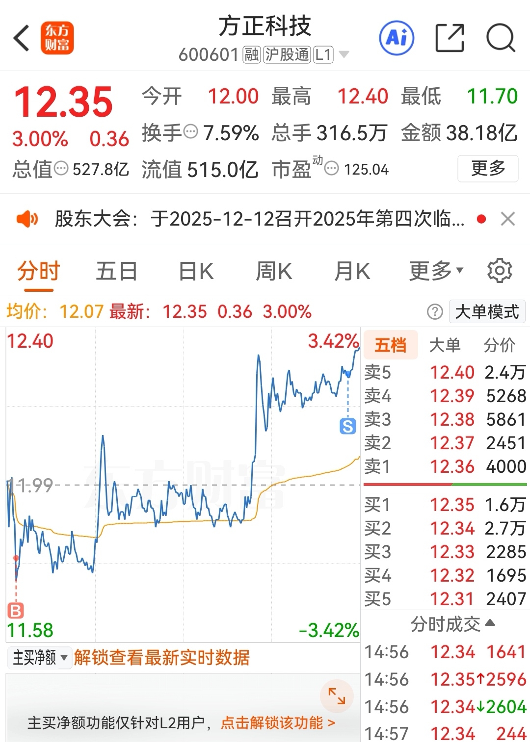 $方正科技(SH600601)$ 早上11.80进,下午12.30出,近期做T找到感觉了。