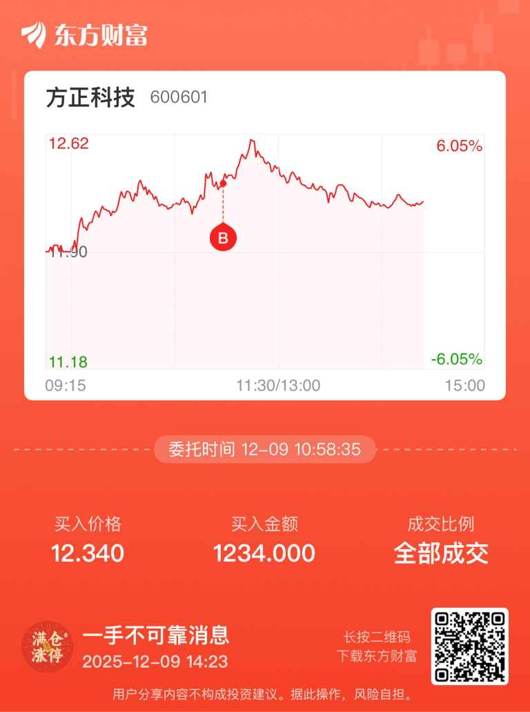 $方正科技(SH600601)$ 穷疯了?1手都割?