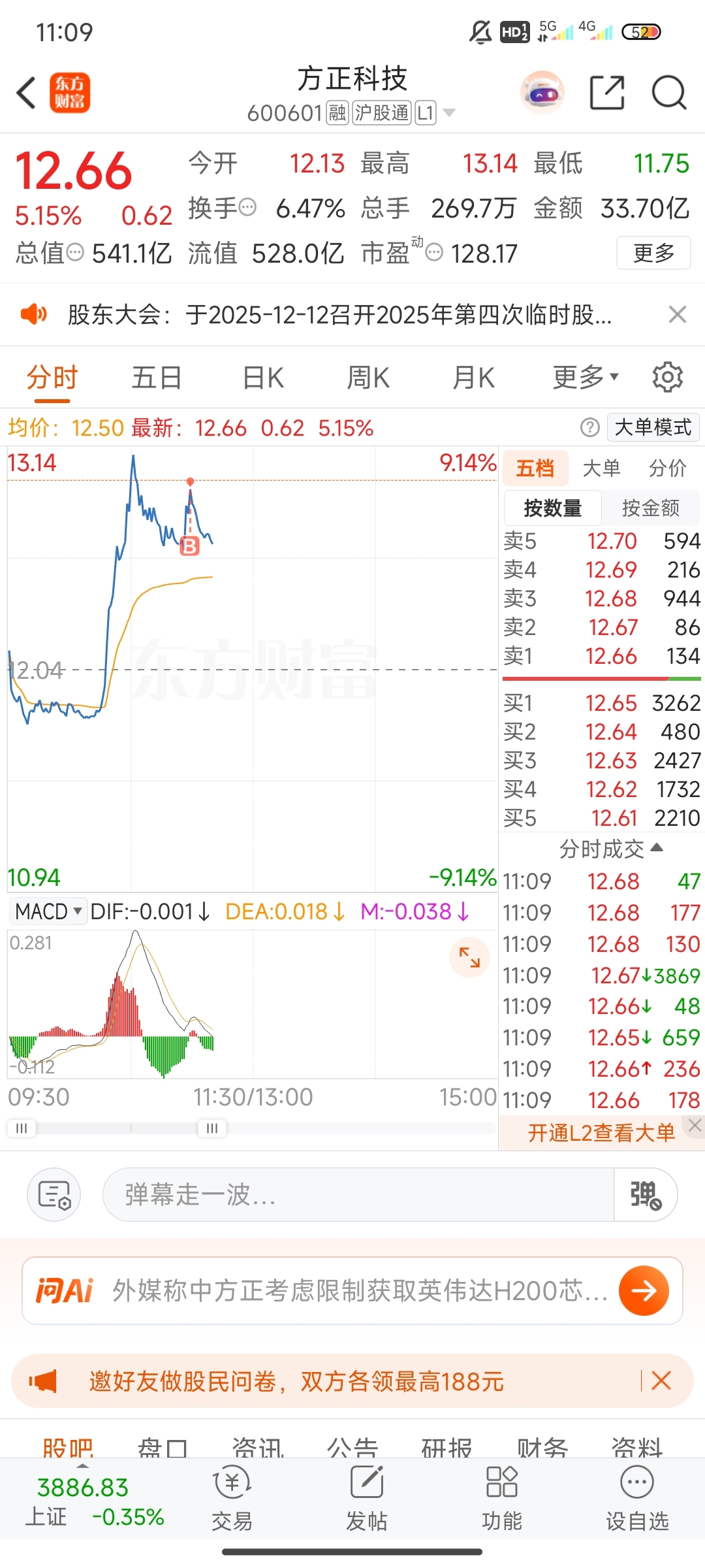 $方正科技(SH600601)$ 无语了