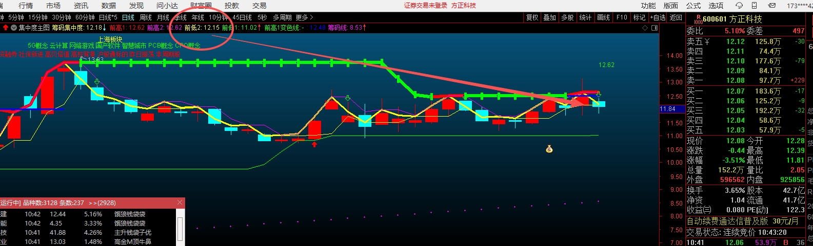 $方正科技(SH600601)$ 我量你今天跌不破12.17