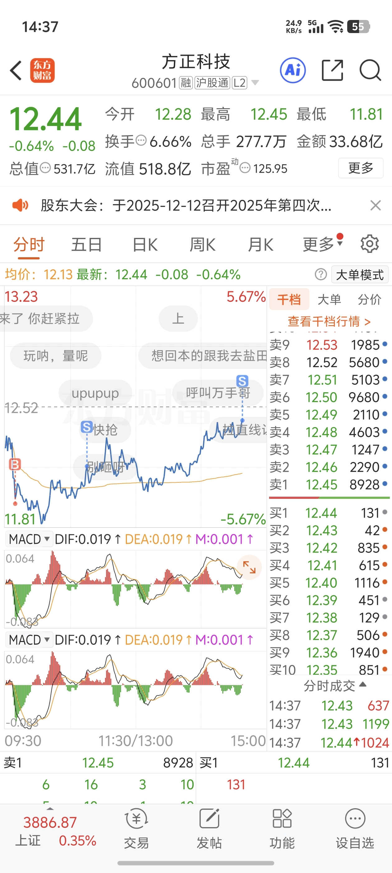 $方正科技(SH600601)$ 星期一继续高抛低吸