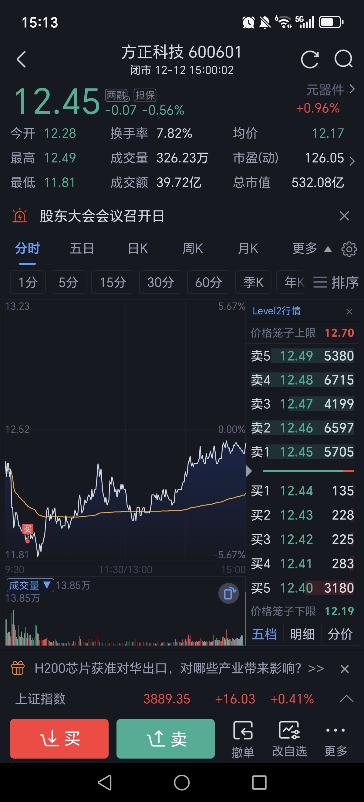 $方正科技(SH600601)$ 上午挂单买入收盘看居然成交了,下周能带我飞吗?
