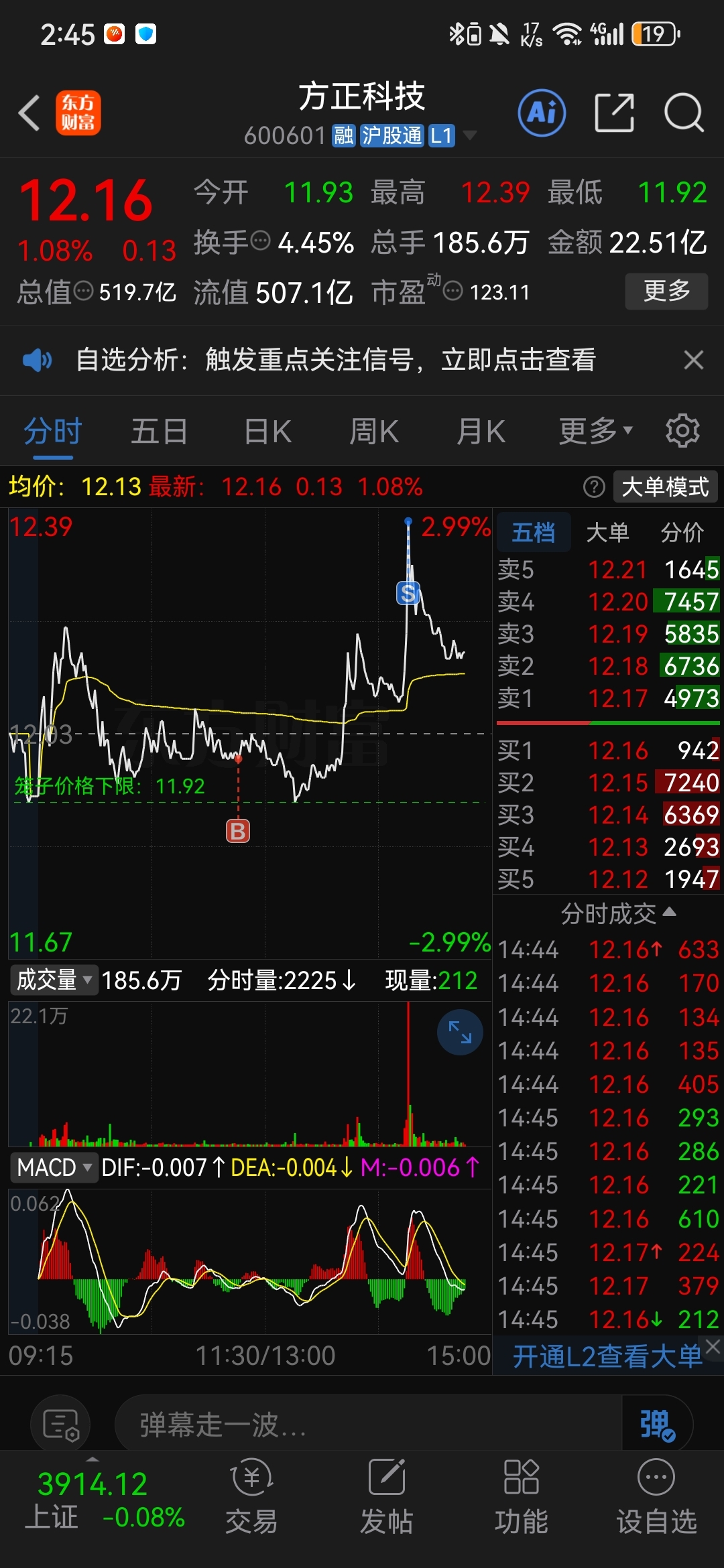 $方正科技(SH600601)$ 有机会做个t,没机会不动手