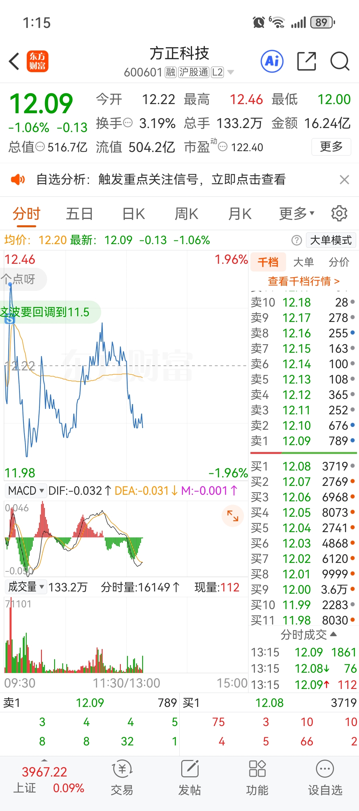 $方正科技(SH600601)$ 跑了,今天都不想买。