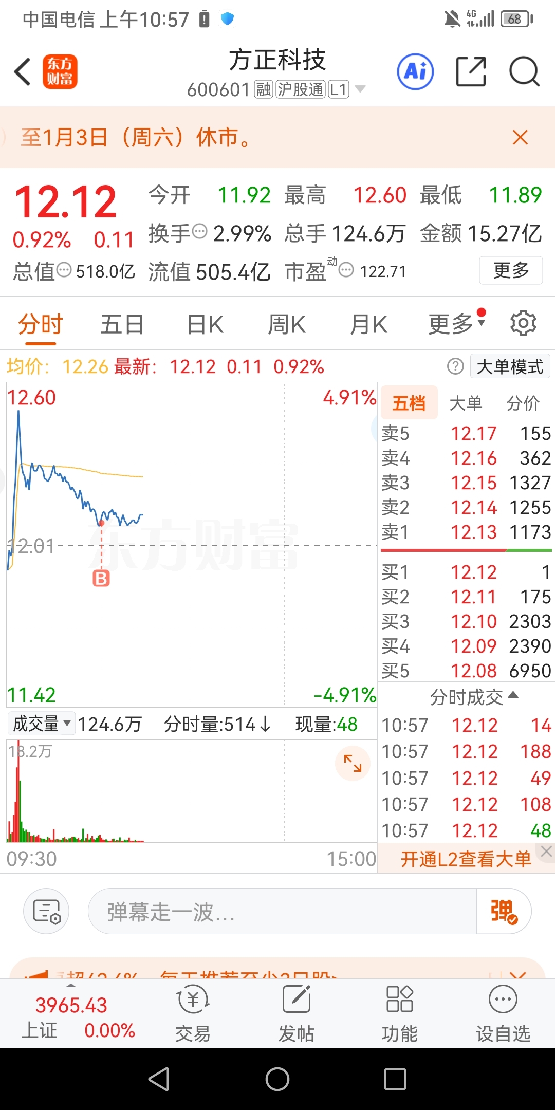 $方正科技(SH600601)$13.75卖出了方正科技
