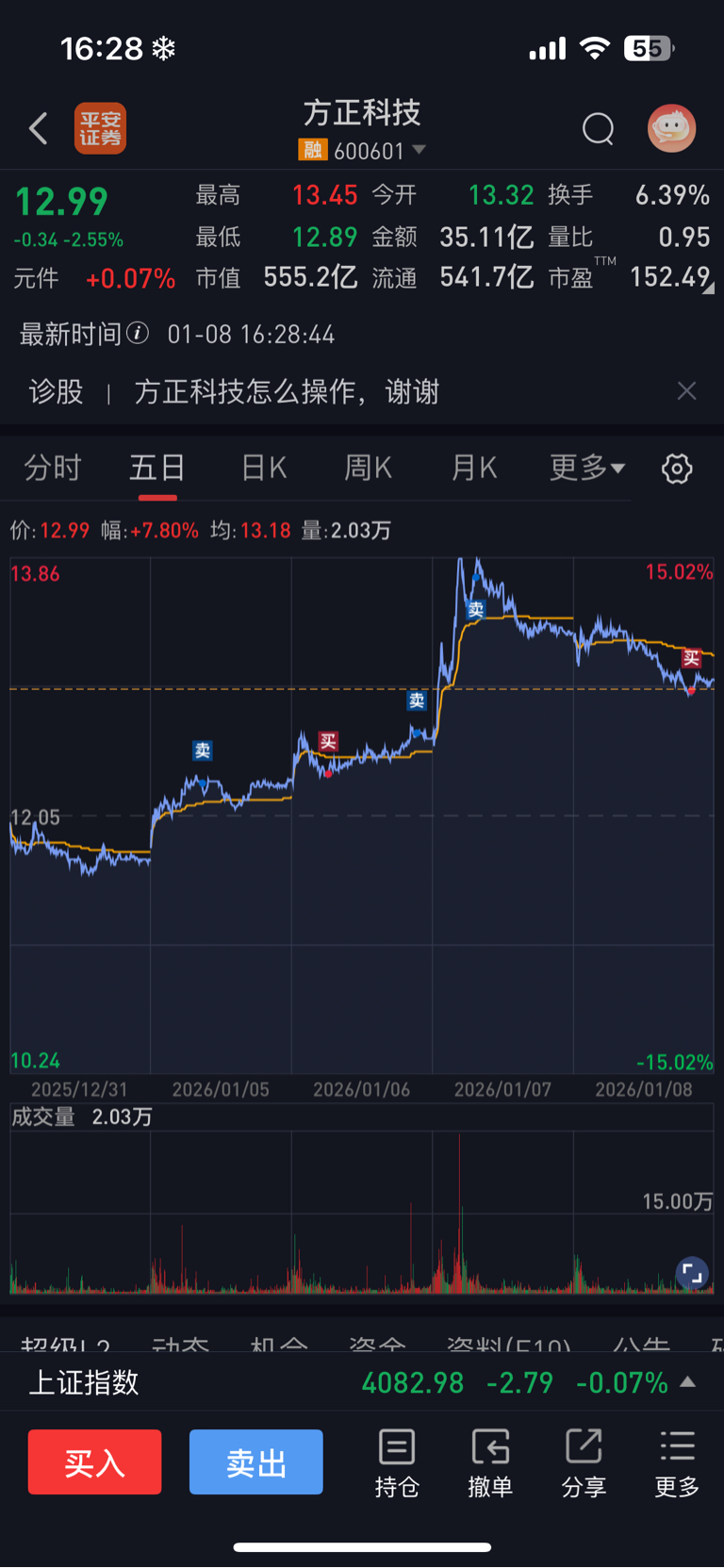 $方正科技(SH600601)$ 昨天清完今天又进了