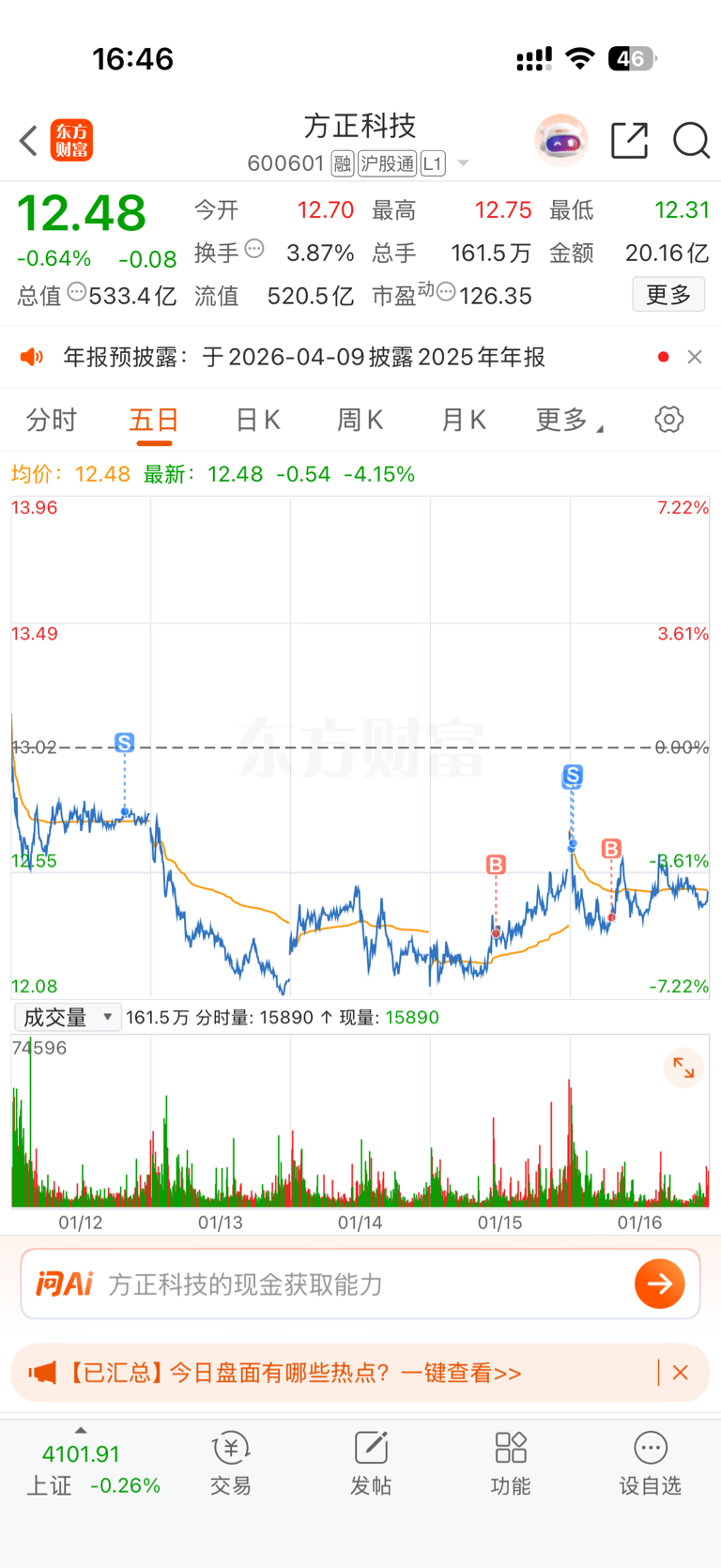 $方正科技(SH600601)$ 这两次t没做反,指数涨了那么多,方正还在水底游泳,兄弟们,难搞啊