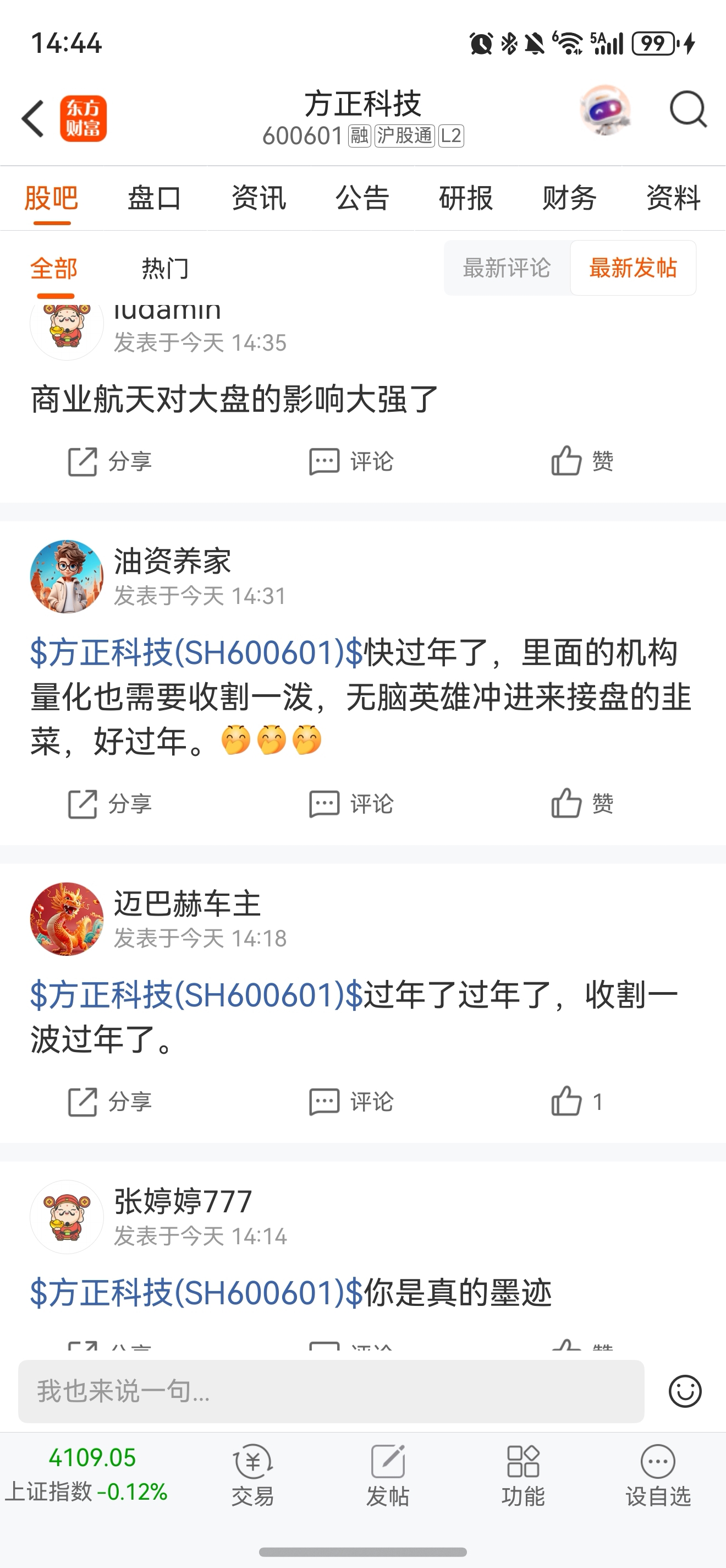 温馨提示: 1.根据《证券法》规定,禁止编造、传播虚假信息或者误导性信息,扰乱证券市场;2.用户在本社区发表的所有资料、言论等仅代表个人观点,与本网站立场无关,不对您构成任何投资建议。用户应基于自己的独立判断,自行决定证券投资并承担相应风险。《东方财富社区管理规定》