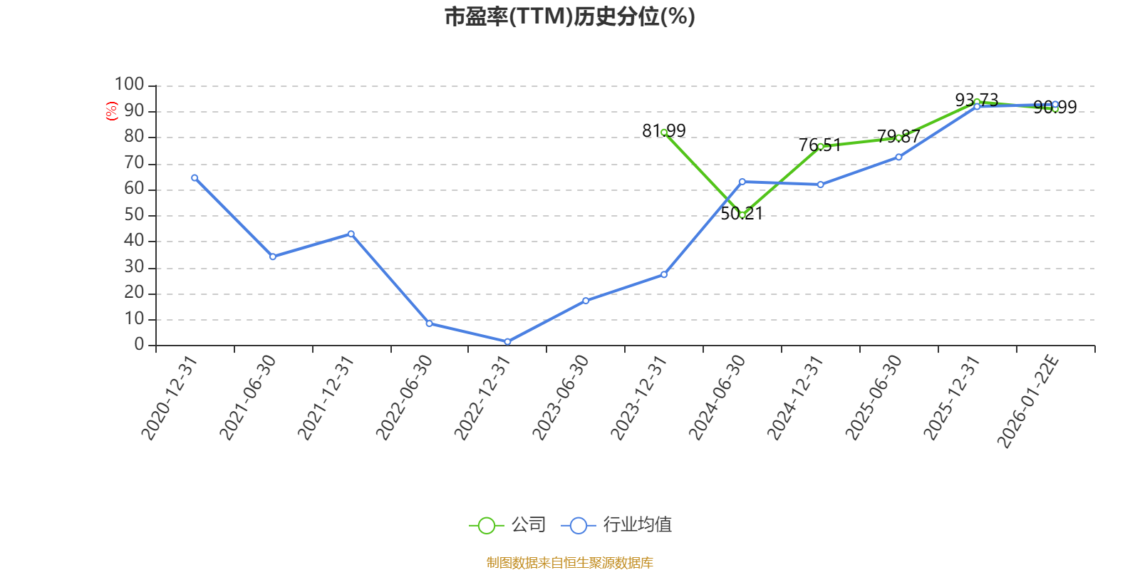 以本次披露业绩预告均值计算,公司近年市盈率(TTM)图如下所示: