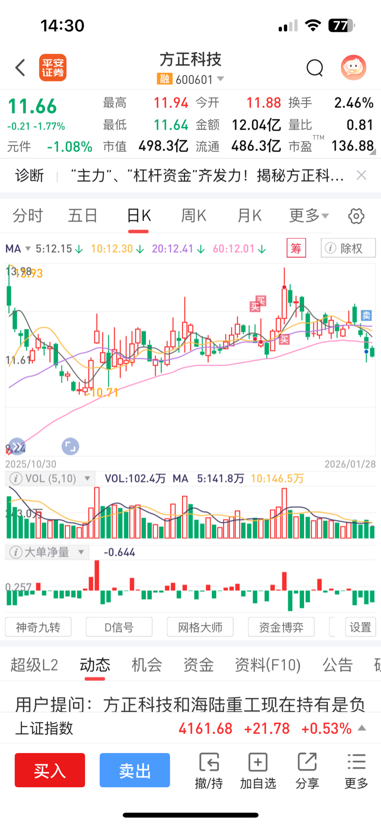 $方正科技(SH600601)$ 本来利润很大 觉得趋势还在还加仓 结果错看了 趋势走坏 果断清仓 市值偏大 业绩一般