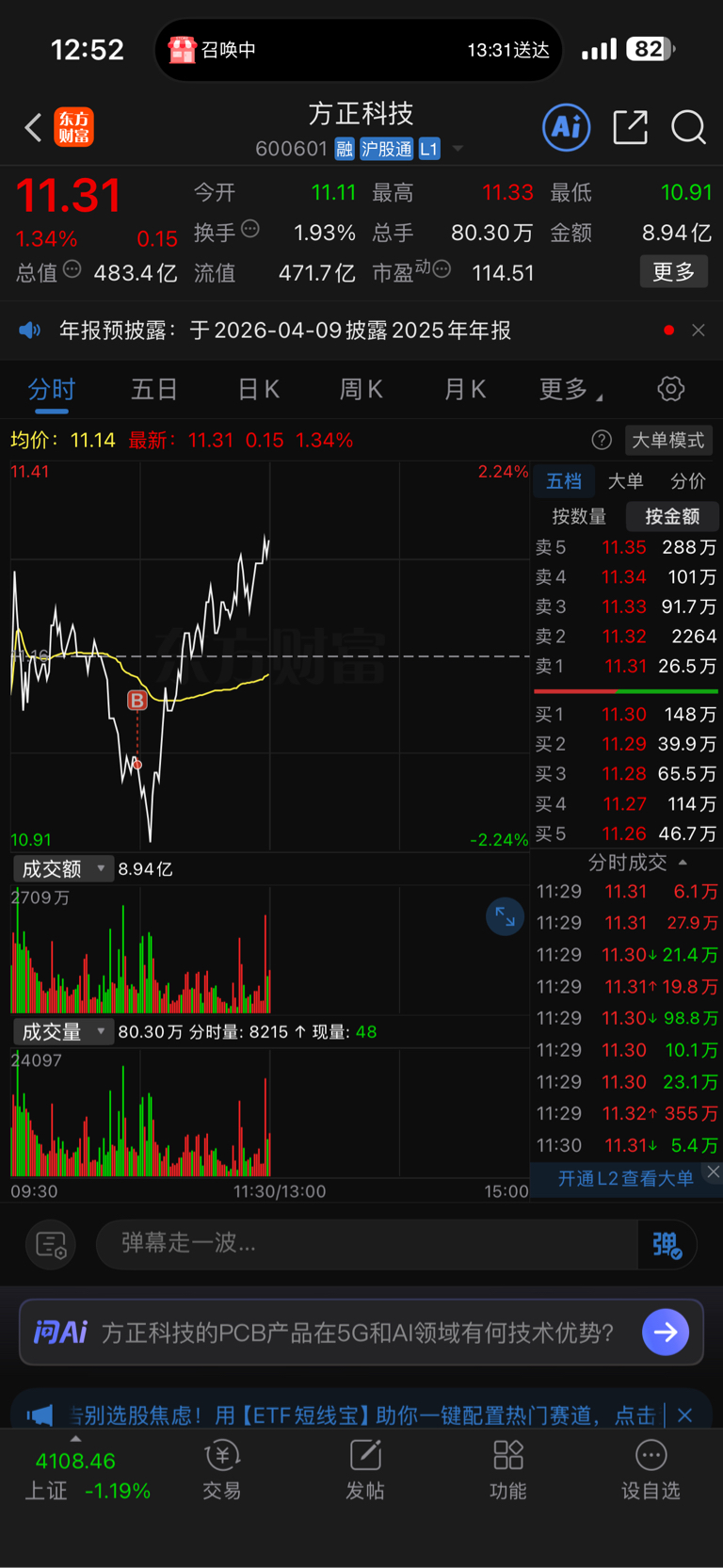 $方正科技(SH600601)$ 11.02捡了一点筹码不过分吧,在座的没人会喷我吧