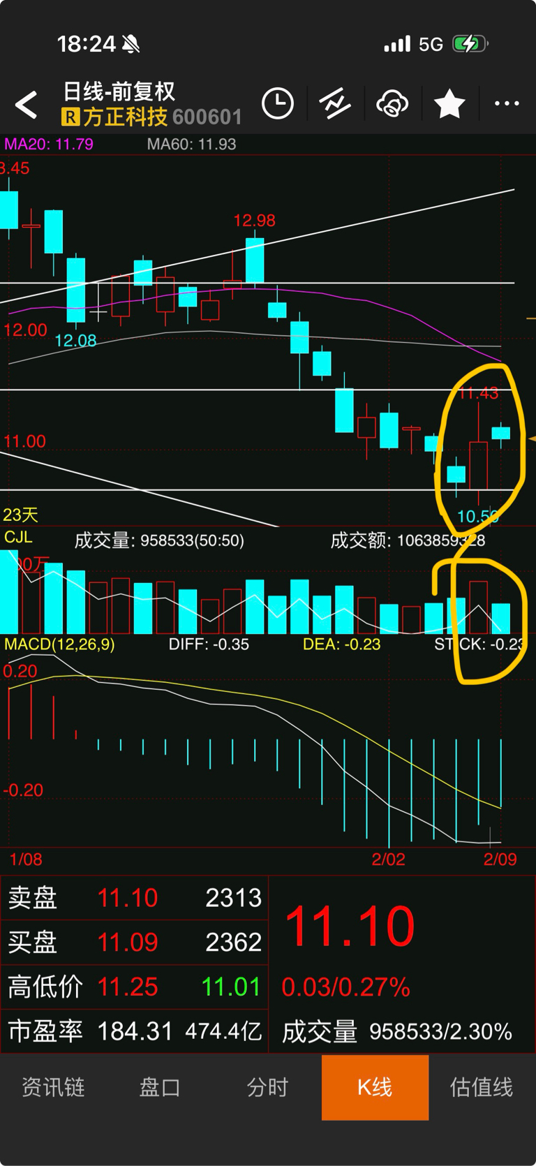 方正科技2月9日分析—秩序正常。方正科技今天收了一个小阴线,成交量相比上周五缩量