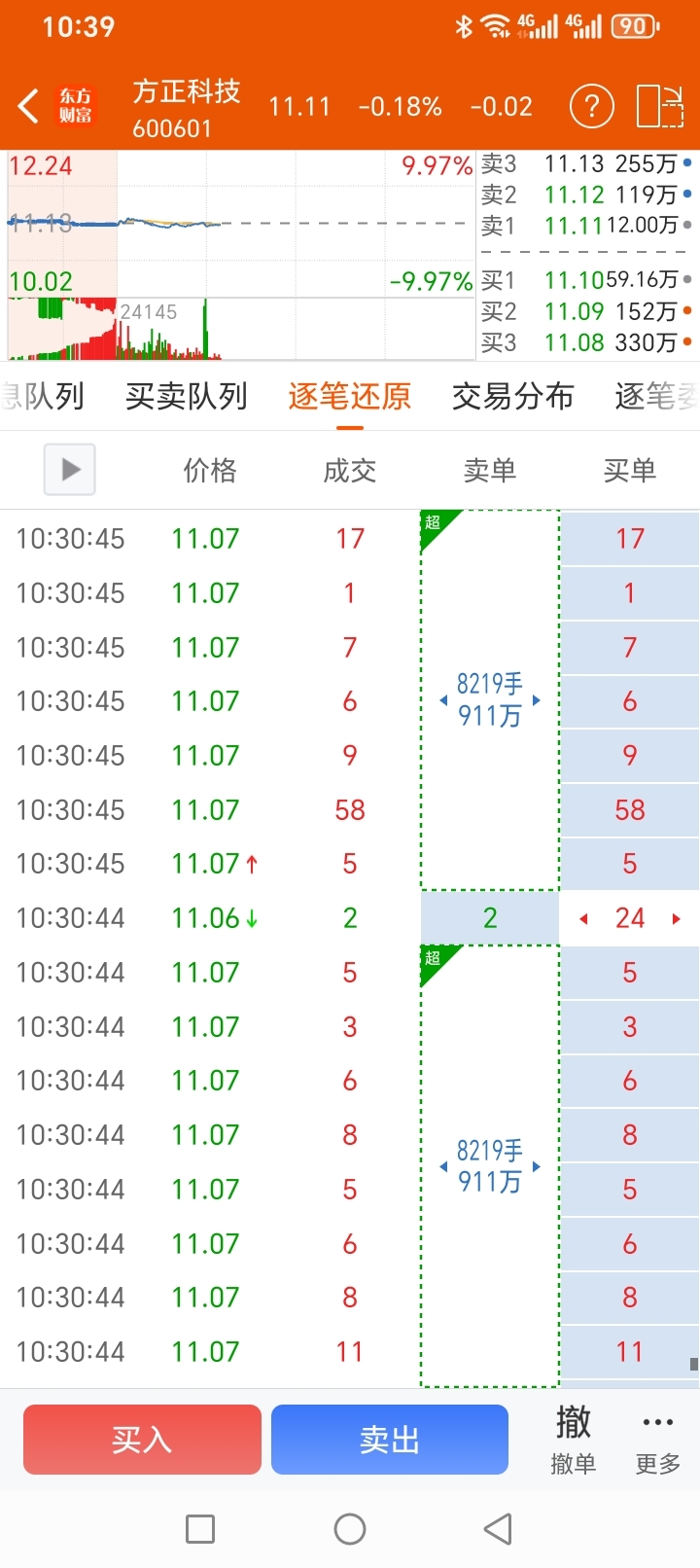 $方正科技(SH600601)$ 连着七八个超级大单砸,牛掰