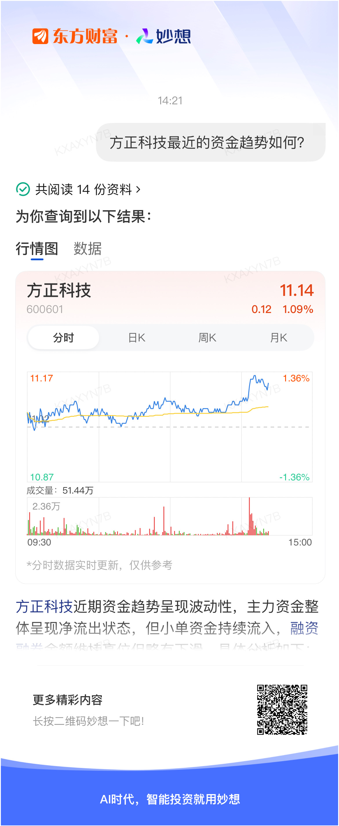 #@妙想,你怎么看?# 妙想一下:方正科技最近的资金趋势如何?