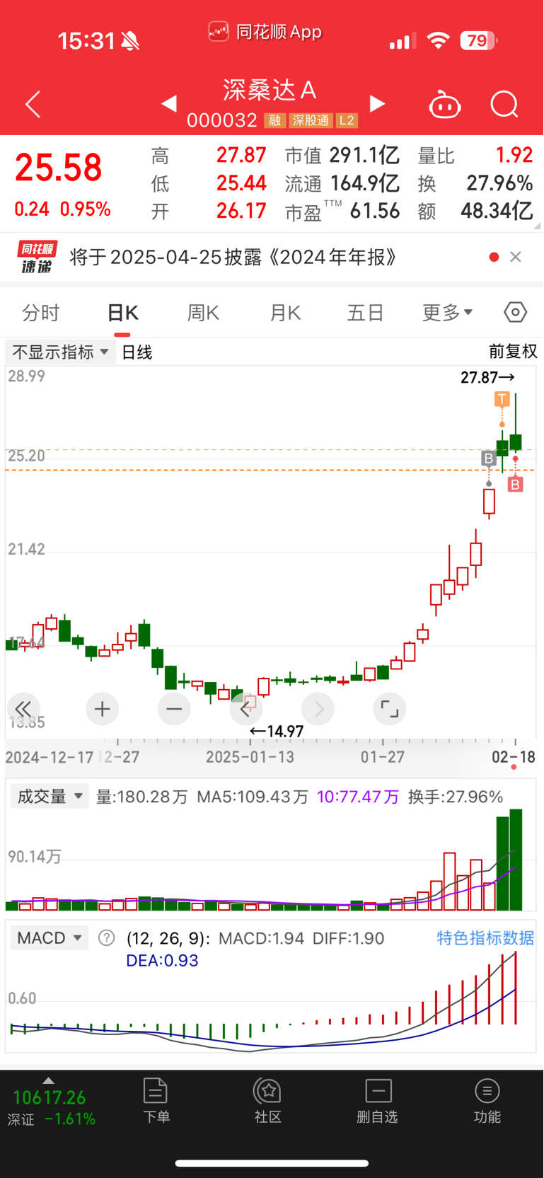 昨天手里剩下的两个深桑达加仓没减,神州数码走人了,今天又买了一些。整体仓位也都很
