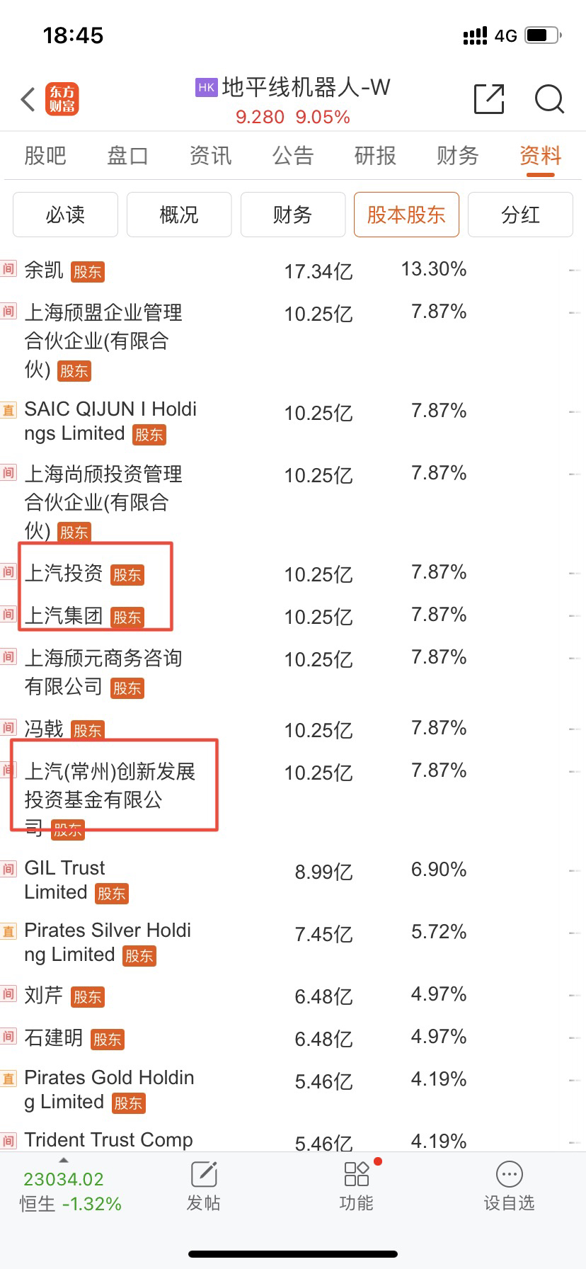 港股:地平线机器人,上汽集团合计持股30亿股,发行价4元,现在9.2元,每股涨了