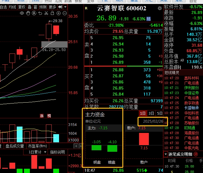 $云赛智联(SH600602)$ 上午主力走了这么多