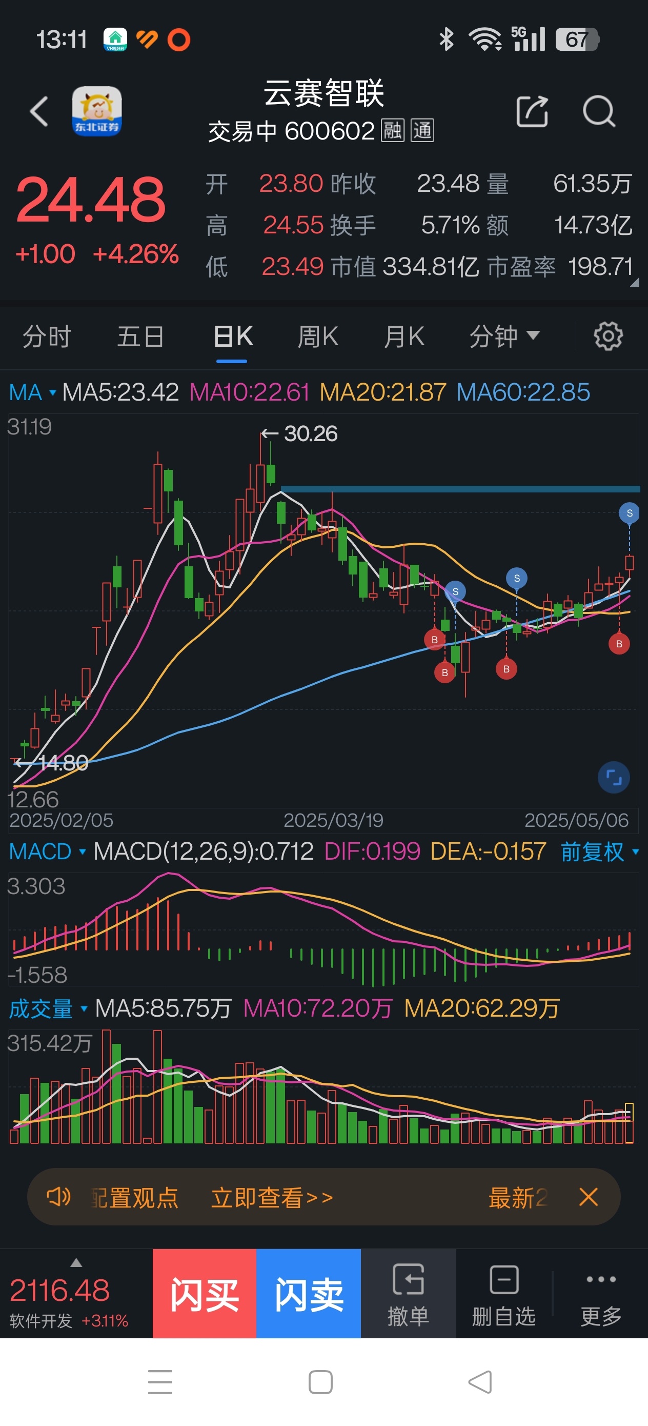 $云赛智联(SH600602)$ 我先走了,留下的兄弟们多赚点