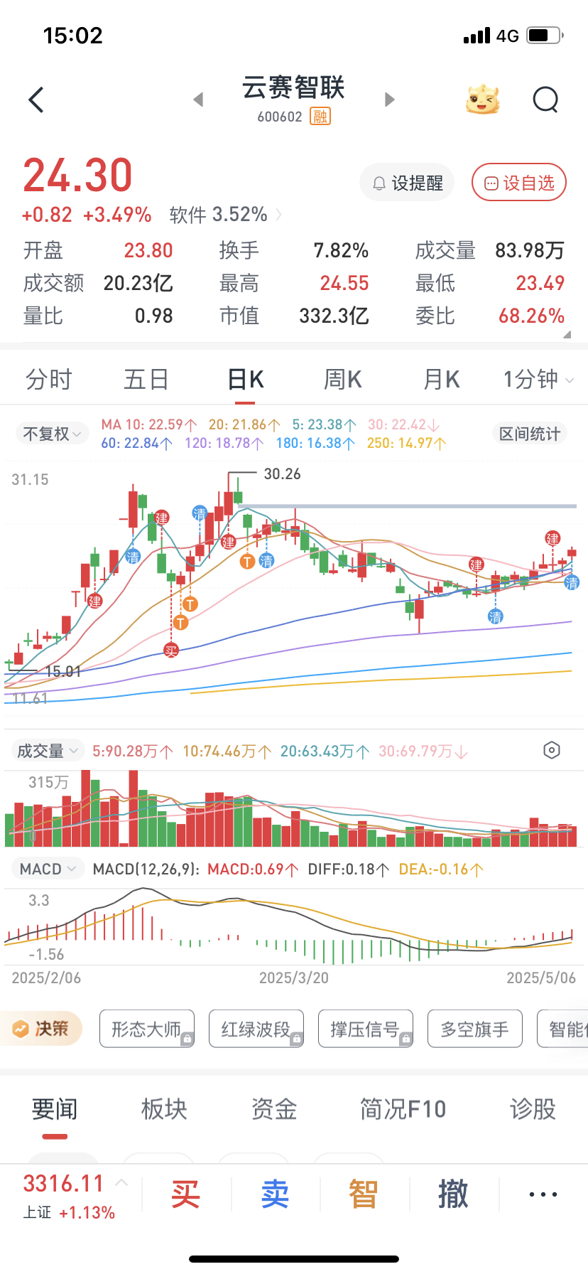 $云赛智联(SH600602)$ 已出,祝大家发财,三个点小肉含泪出了