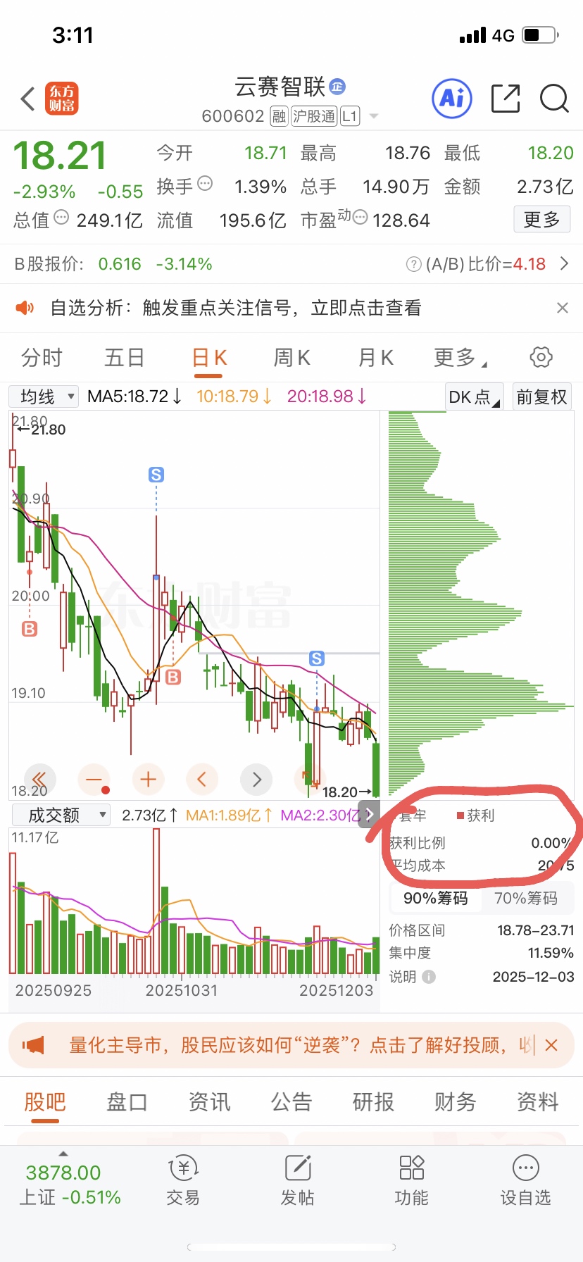 $云赛智联(SH600602)$ 你是怎么做到的0获利