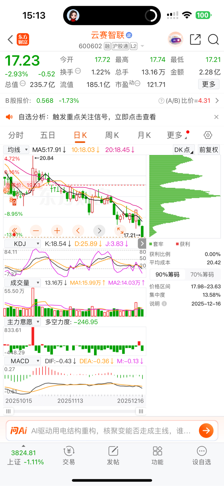 $云赛智联(SH600602)$ 在哪里跌倒就在哪里躺着。