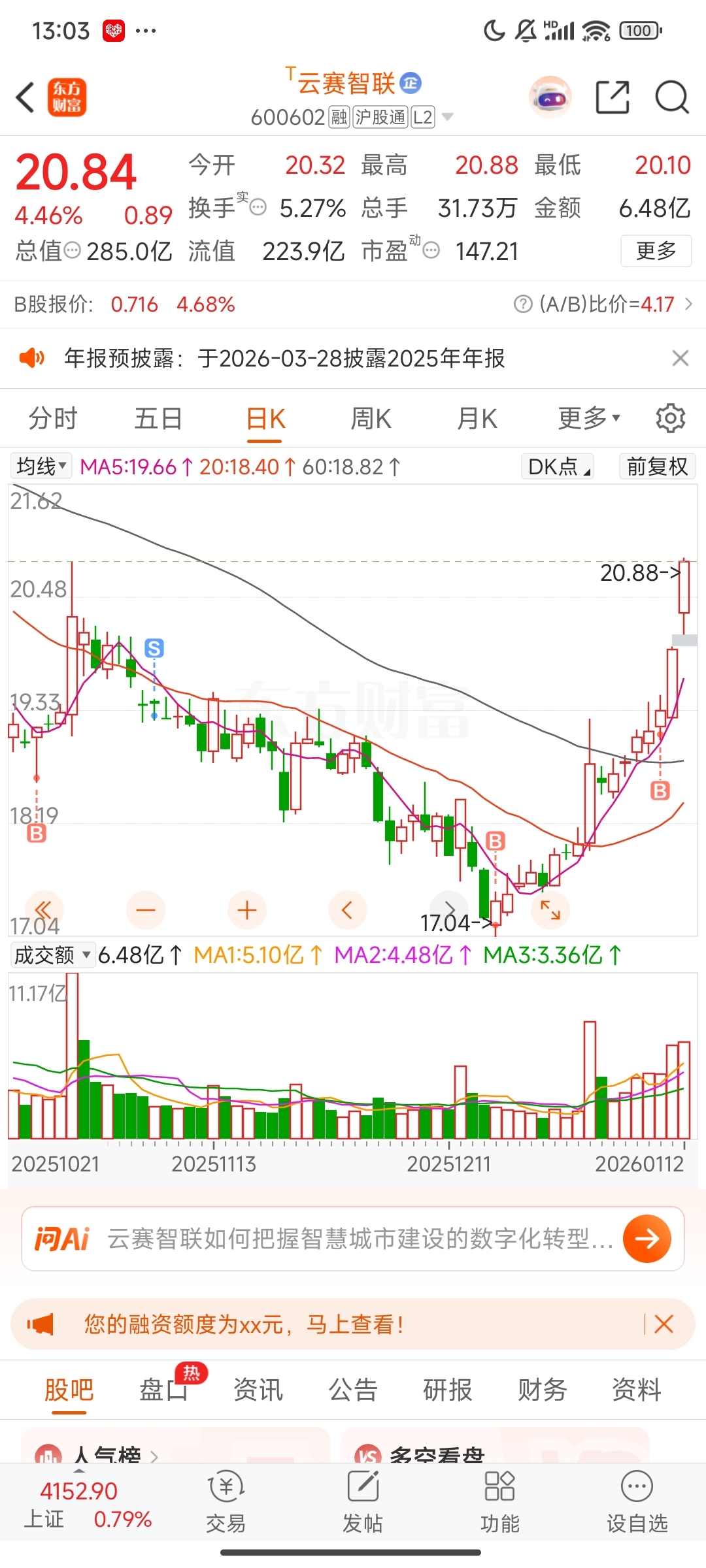 $云赛智联(SH600602)$ 坚定做多,短期看25,目标30