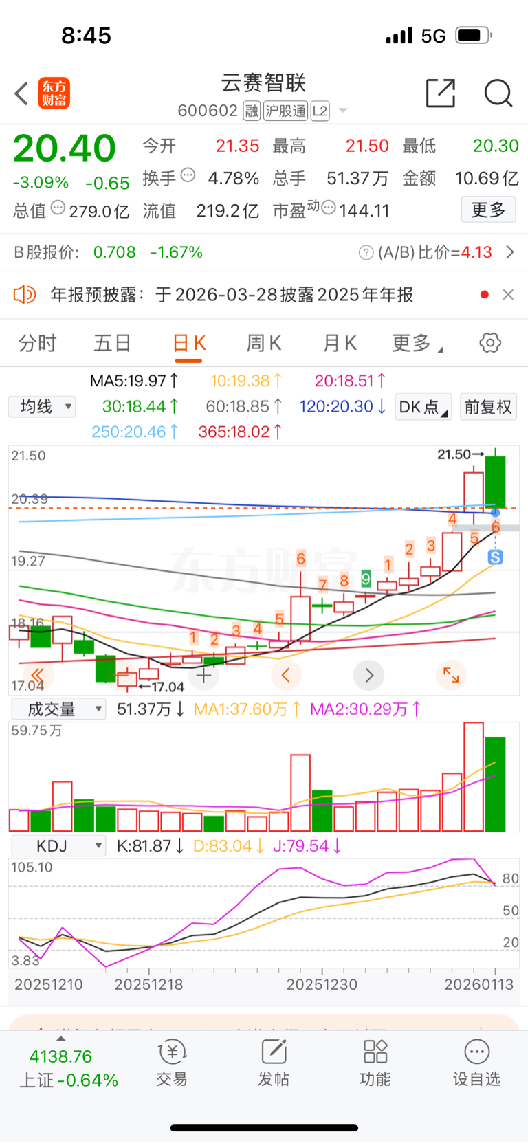 $云赛智联(SH600602)$ 怕你又套我几个月,算鸟,算鸟