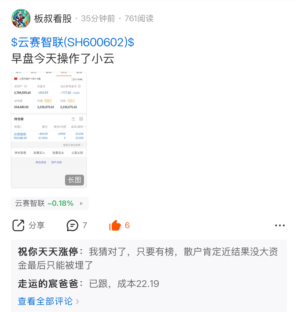 板叔的每一个标的都是实盘同步分享,从未有过涨后补发、盘后补发的情况。市场本就没有那么多涨停可抓,做交易还是要脚踏实地、理性客观。认可板叔的朋友,不妨随手点赞关注,不必等标的涨了才来认可~